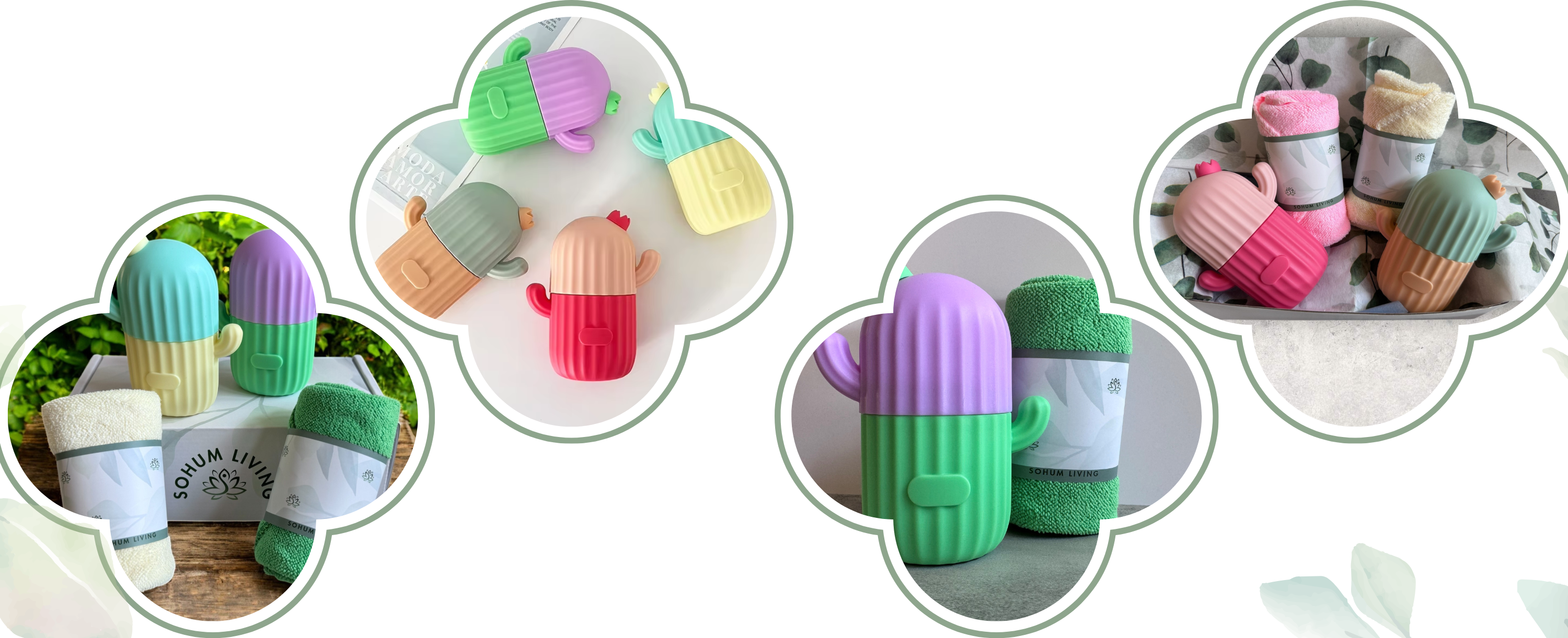 Gift Set - Premium Silicone Ice Roller for Face & Body - Reduce Puffiness, Tighten Skin, and Soothe Irritation - Teal/Yellow & Purple/Green
